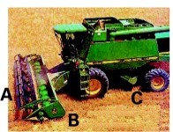 Growers can accurately measure and monitor combine losses, including shattering, header losses, leakage from the combine, and losses out the rear of the combine, by following a few simple steps. With the straw spreader disengaged, harvest a short strip of typical grain, then stop and let the combine clean out. Mark the rear of the header (position B in Figure 1) and in front of the rear wheels of the combine (position C in Figure 15.1), then back the combine to expose this strip. The actual losses and reason for these losses can be estimated by the location and the amount of grain on the ground.